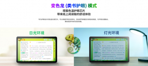 其中,值得一提的是它独特的变色龙(类书护眼)模式,通过内置的色温芯片,根据环境光线变化自动调节屏幕显示颜色和亮度,与环境光相融合,模拟纸质书本的阅读效果,带来纸上阅读般的舒适体验。