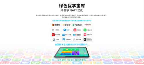 此外,优学派还拥有:平板家管系统,五大绿色安全管控如应用管控、上网管控、时间管理、作业密码等等,让孩子专注学习;手机远程管控,让家长外出时,也能随时随地通过手机端APP,远程实时管控学生平板电脑,孩子学了什么、学了多久、效果如何,一手掌握;绿色优学宝库,适配全国各地数千主流教育APP并持续更新,每款应用经过严格筛选,过滤不良应用,打造绿色学习环境,并由专人实时监控,确保应用安全性。