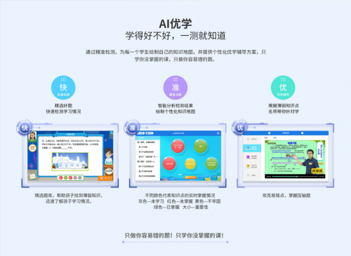 强大的AI手势指学功能,配合独特的AI优学,让孩子在接触新知识补强旧知识的过程中持续进步,网课效率大大提高。