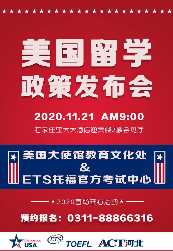 本场美国留学动态发布会将在11月21日上午9点,石家庄亚太大酒店迎宾楼二楼会见厅举行,现场不止有名师大咖为同学和家长们带来留学最新动态,还有多个奖项环节供现场同学及家长参与领取,更推出多项签约即享的优惠福利及零元课程。发布会免费报名电话0311-88866316或15030167226(同微信),预约报名将获得某全国重点中学内部试卷。更多内容敬请关注微信公众号“ACT河北”。
