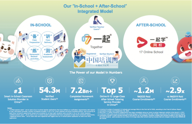 招股书显示,一起教育科技通过产品、技术、内容实现校内校外结合,线上线下打通,为学生、家长、老师提供综合智能学习空间。