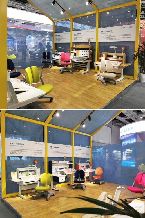 图:展会现场,护童学习桌展区观展嘉宾络绎不绝