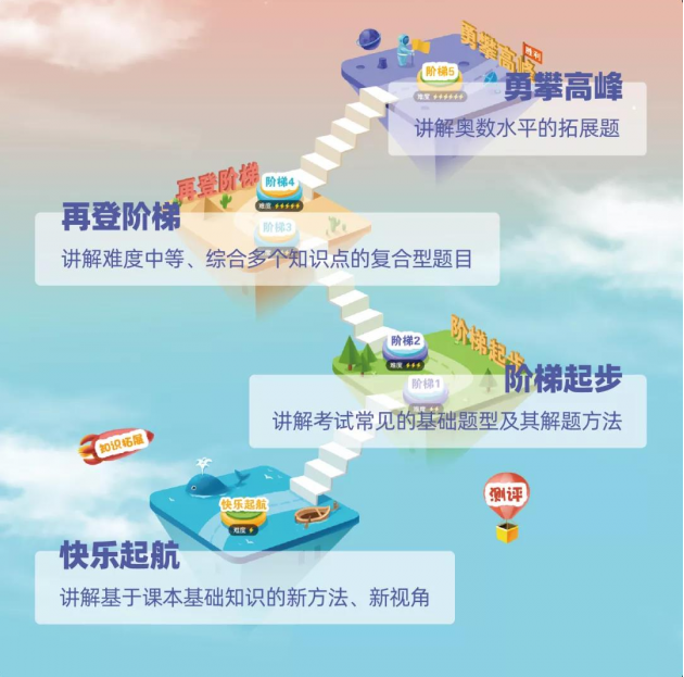 同时,阶梯数学采用“引导式讲解”的教学方法,把每道题目的重难点进行拆解,通过不断地提问,引导孩子主动思考,并且讲解3至6种解法,帮助孩子真正做到“知其所以然”,掌握解题的方法。